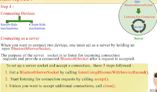 step first , Get a BluetoothServerSocket by calling listenUsingRfcommWithServiceRecord().